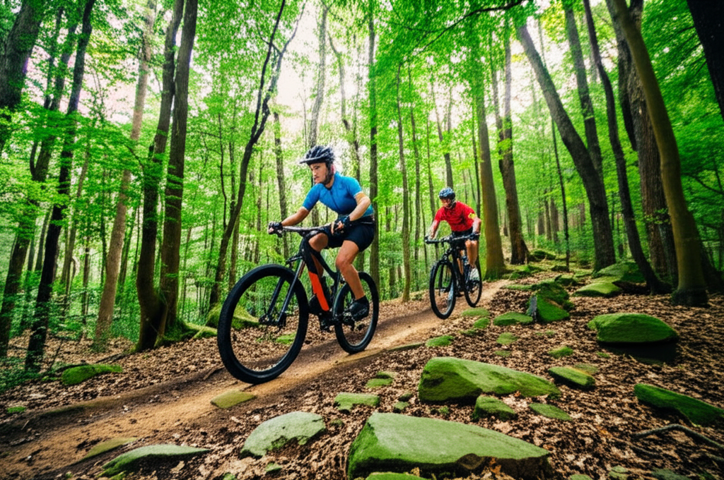 Explorando senderos y montañas en bicicleta.