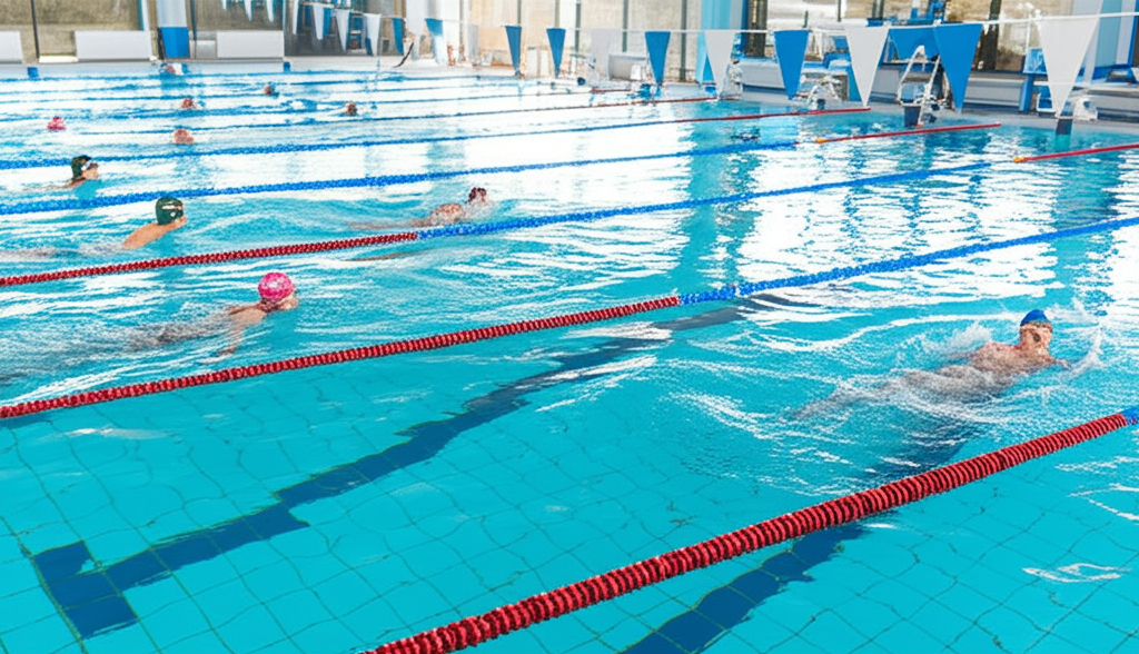 Grupo de natación que entrena en las mañanas.